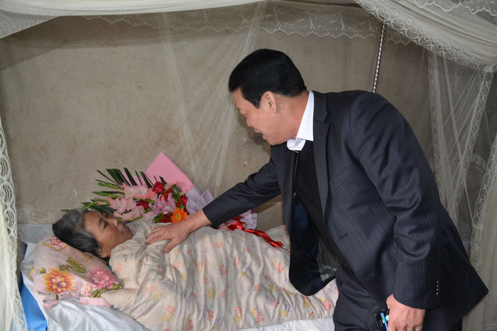 董事長看望身患腦溢血致癱、因病返貧的村民龐樹美
